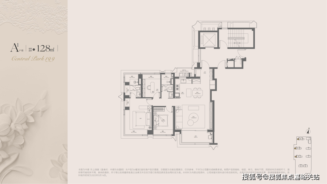 设想为三房,两间为套房,北次卧亦接近套房设置装备摆设,感十脚。超大南向面宽取巨型横厅付与空间极高矫捷性,可适配书房、瑜伽室等多沉场景。